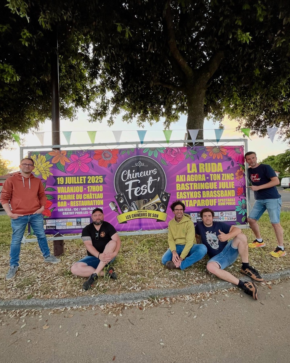 La team Chineurs de son devant l’affiche 2025 © Les Chineurs de Son