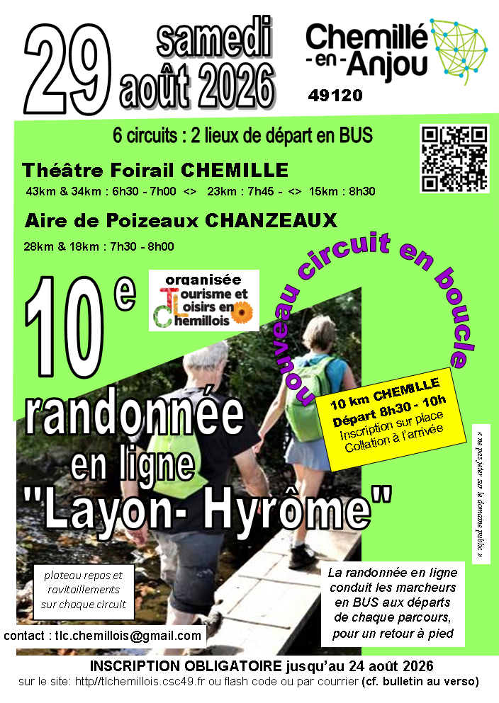 Inscription obligatoire, avant le 24 août, pour les circuits en ligne sur le site de l’association : http://tlchemillois.csc49.fr