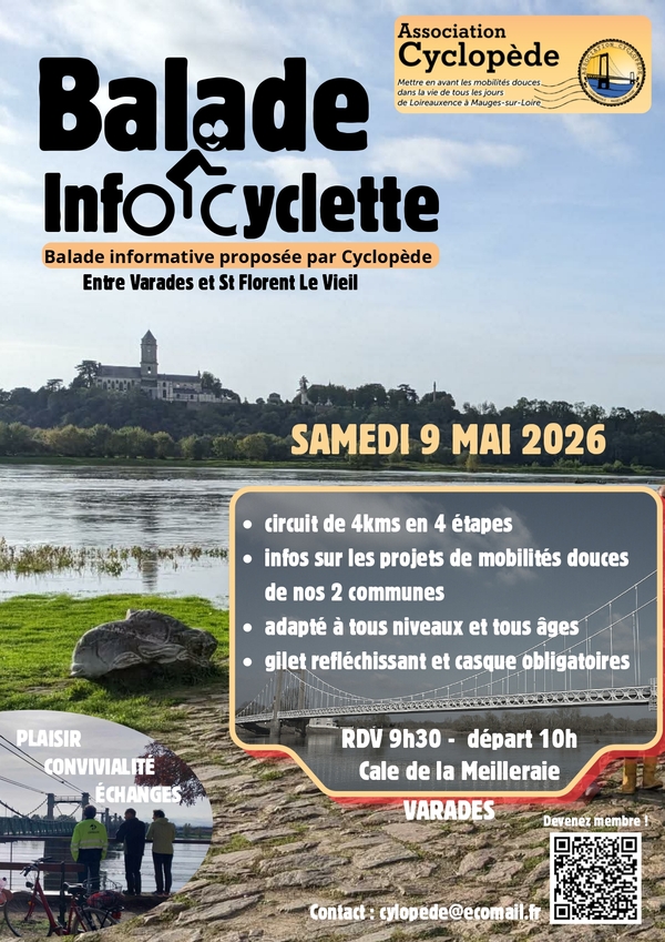 L'association Cyclopède, qui a pour but de mettre en avant les mobilités douces dans la vie de tous les jours sur les communes de Loireauxence et Mauges-sur-Loire, organise une balade informative le samedi 9 mai 2026.