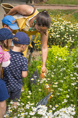 Au fil des quatre saisons, les enfants âgés de 3 à 6 ans s’éveillent et s’émerveillent au jardin. Pour le mois de septembre, on fabrique une petite bête en matériaux récoltés dans le jardin, on fabrique des cookies et on déguste le goûter tous ensemble.