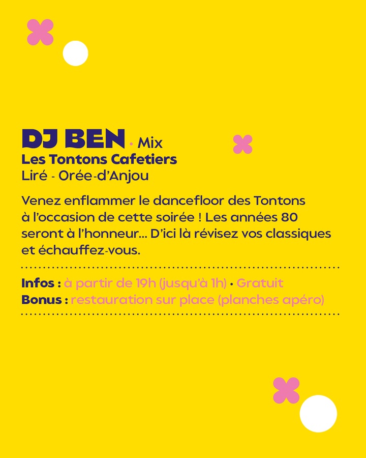 DJ Ben enflammera la piste des Tontons Cafetiers à Liré avec ses mix mettant à l'honneur les années 80 !