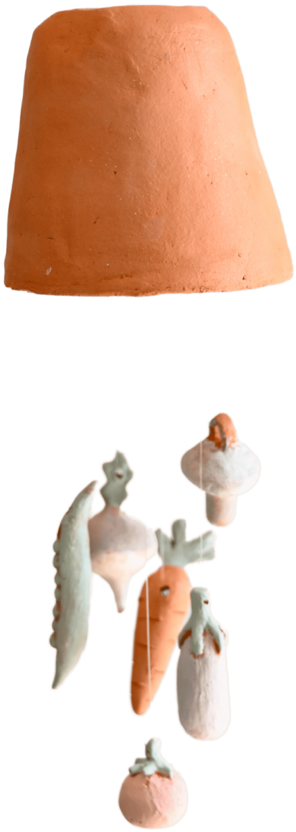 A partir de 6 ans, fabriquer un mobile "pluie de légumes" en collectif. Un moment à partager en famille ou entre ami.es.