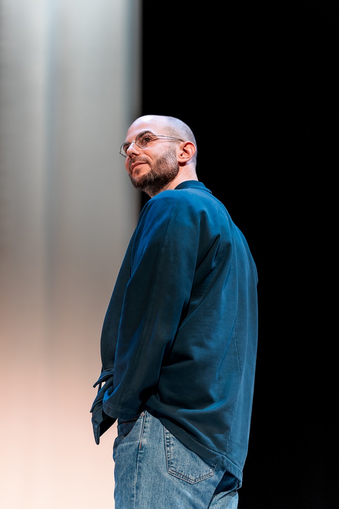 À travers ce premier seul en scène, l’artiste interroge la place du discours dans notre vie politique.