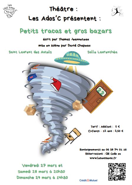Les Ados'C, troupe ado des Uns Sans C, présentent Petits tracas et gros bazars, écrit par Thomas Jeanneteau et mis en scène par David Chapeau.