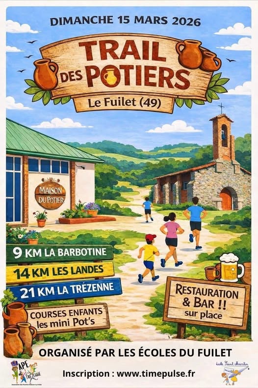 Les écoles du Fuilet vous donnent rendez-vous pour la 1ère édition du "Trail des Potiers", un évènement sportif et convivial au cœur d'une commune reconnue pour son village potier.