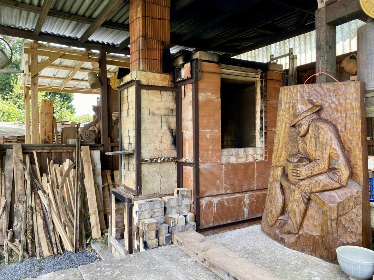 Vient ensuite la double cuisson : d’abord à 980 °C, puis à 1300 °C dans un four à bois à flamme bouclée conçu de ses mains. Pendant huit heures, il veille au feu, recharge sans relâche, ajuste la température — un ballet précis qui révèle les tons flammés et les textures vibrantes de ses pièces.
