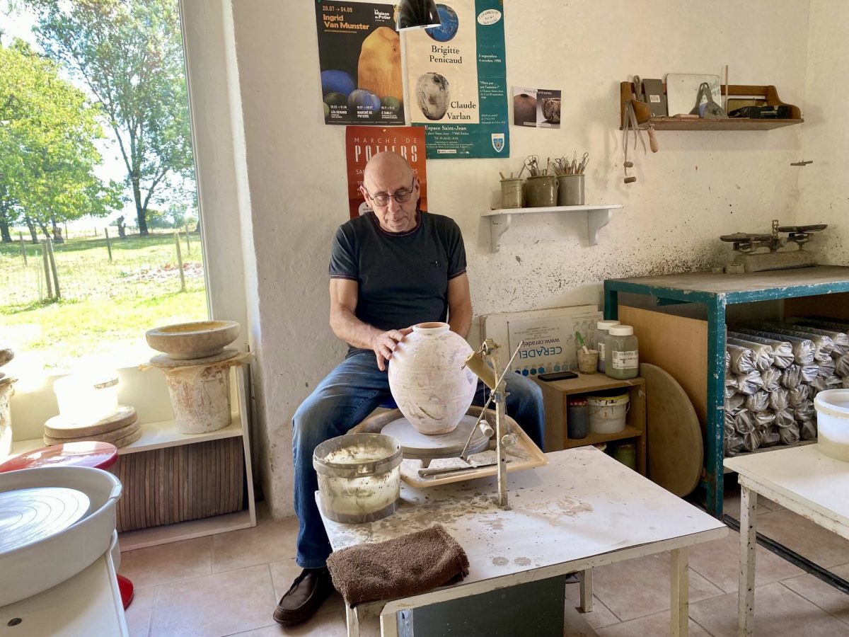 Depuis l’enfance, Pascal Durot est fasciné par les gestes de la poterie. Après une formation de potier-céramiste, il installe son premier atelier à Bordeaux, avant de s’implanter en Anjou en 1990, mêlant création et enseignement pendant plusieurs dizaines d’années. Aujourd’hui, il fait perdurer au Fuilet un savoir-faire ancestral, maintenant vivante la mémoire potière du village.