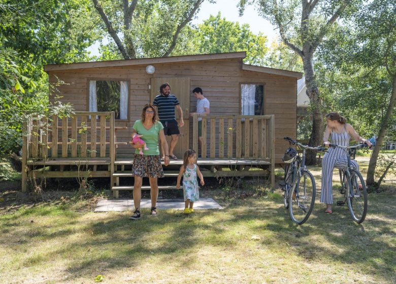 Camping à la ferme, Dany et Natacha vous proposent de grands emplacements arborés pour votre tente, votre caravane ou bien des locatifs de type chalets, mobil-homes, ou roulotte équipés de grandes terrasses mais aussi des cabanes sur pilotis et sanitaires privatifs installés sur votre emplacement de camping.