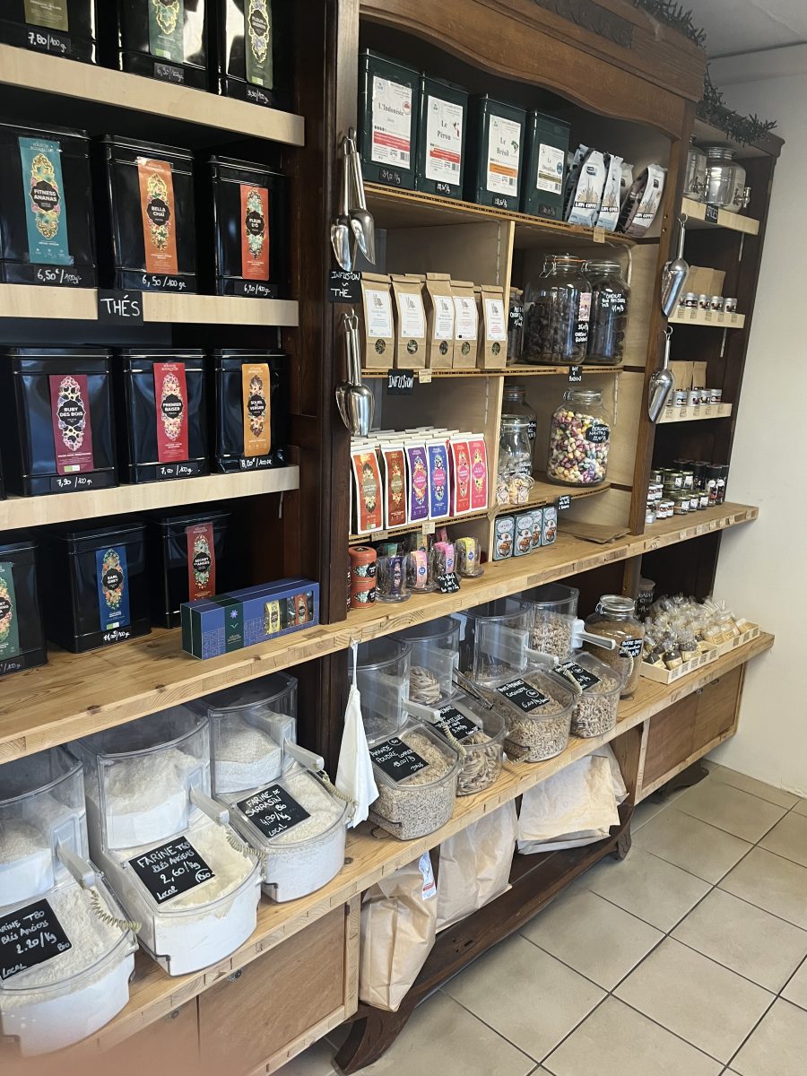 Petite épicerie avec salon de thé pour faire le plein de produits locaux et de saison à Saint-Florent-le-Vieil, Petite Cité de Caractère située sur les bords de Loire entre Angers et Nantes.