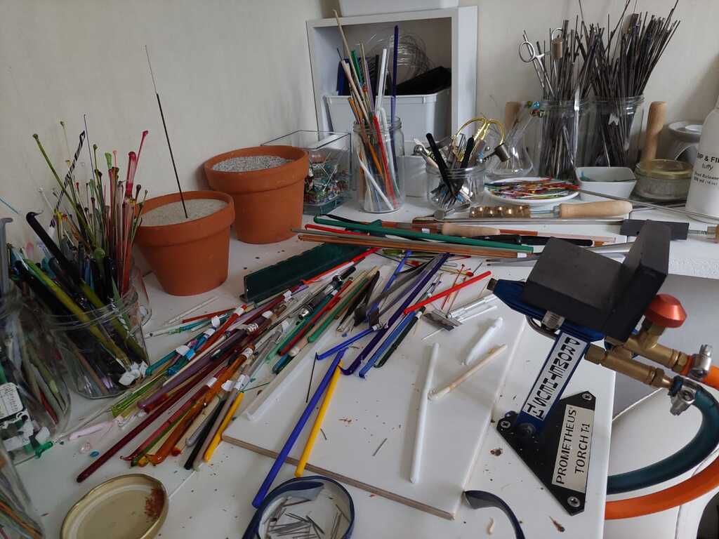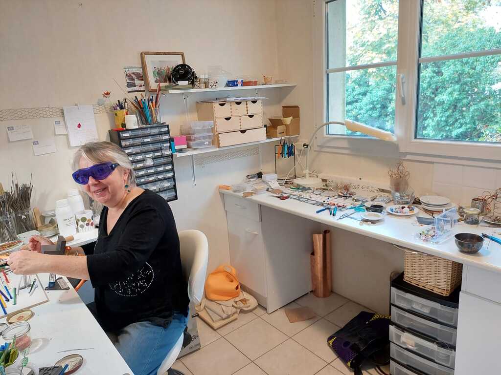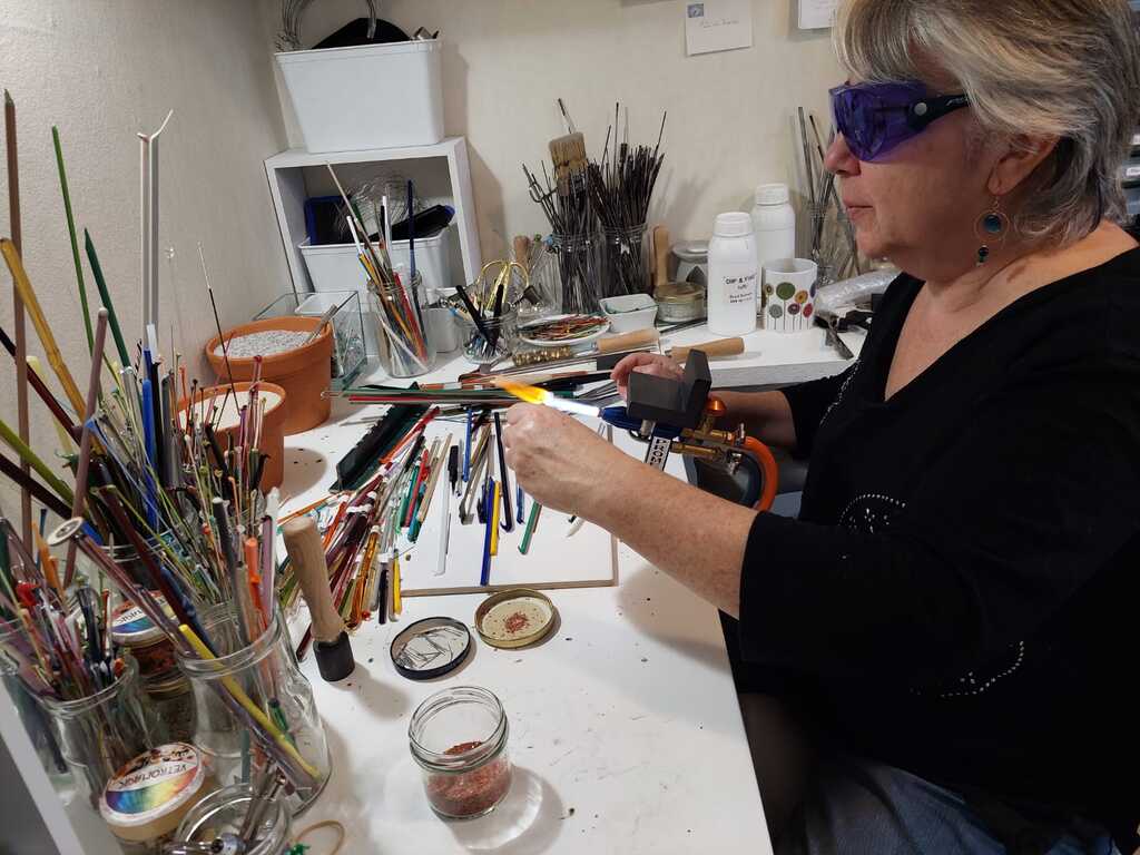 Voir l'artisane travailler derrière le chalumeau et les perles se composer progressivement, entendre les explications techniques, l'histoire de ses inspirations...