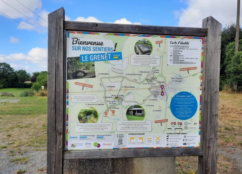 C'est ici aussi que débute la randonnée en boucle de "Grenet" (8 à 10 km), idéale pour découvrir le patrimoine historique de Saint Quentin en Mauges.