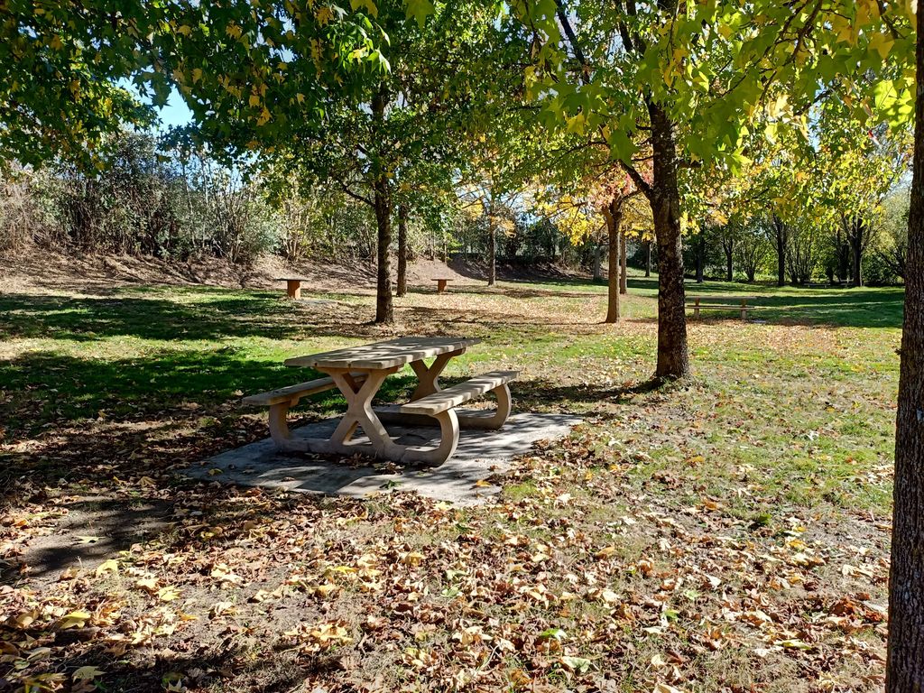 L’aire de pique-nique offre un cadre simple et verdoyant, idéal pour une halte en plein air.