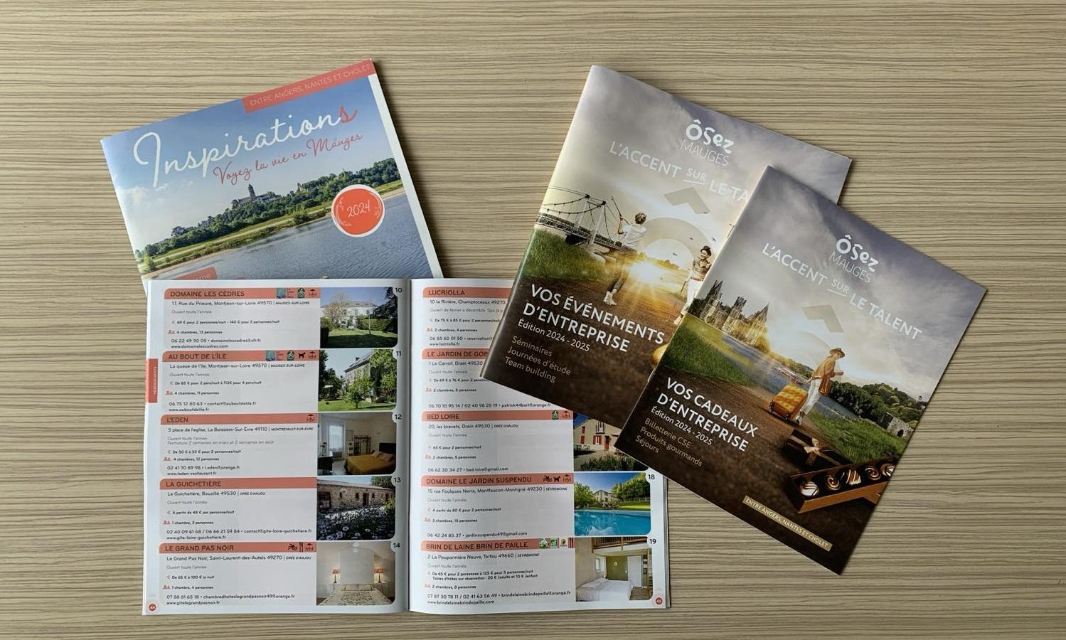 Ôsez Mauges promeut votre établissement sur différents supports. Bénéficiez d’une communication privilégiée au sein des éditions : carnet d’adresses loisirs, manuel Événements Pro, livret « Vos cadeaux d’entreprises ».