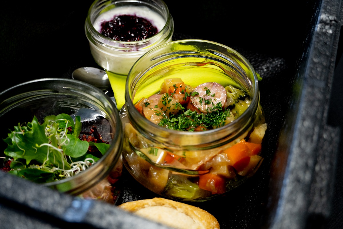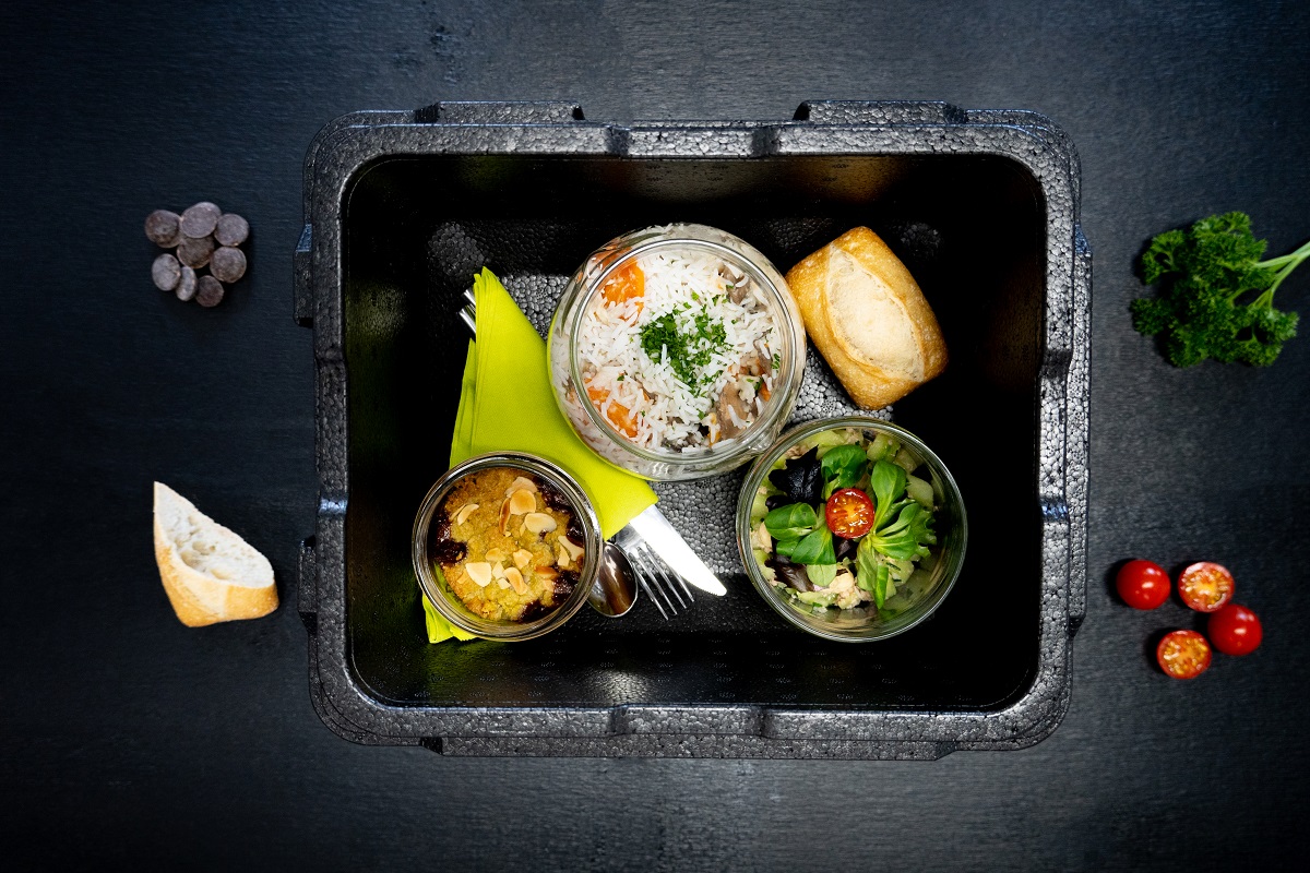 Laissez-vous tenter par les plateaux-repas éco-responsable avec des bocaux cuisinés à base de produit locaux par le traiteur Aux Saveurs du Jour à Chemillé.