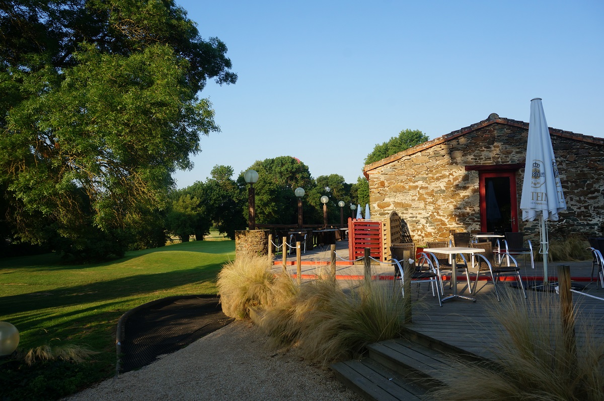 ⛳Après votre partie de golf, vous pourrez prendre un verre sur la terrasse du restaurant et admirer la vue sur ses frênes centenaires et son dessin de Michel Gayon.
