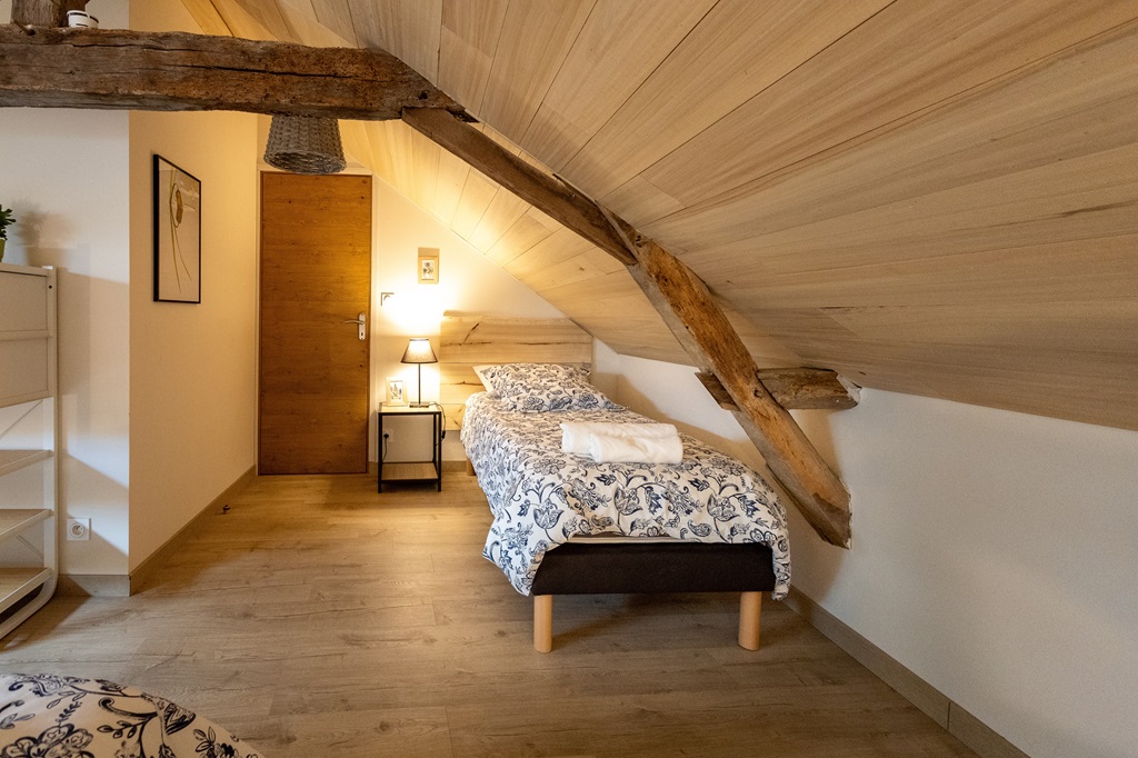 - la chambre Les Peupliers, pour 3 personnes (à l'étage) avec un lit de 160, un lit de 80, modulable en 3 lits en 80 cm.