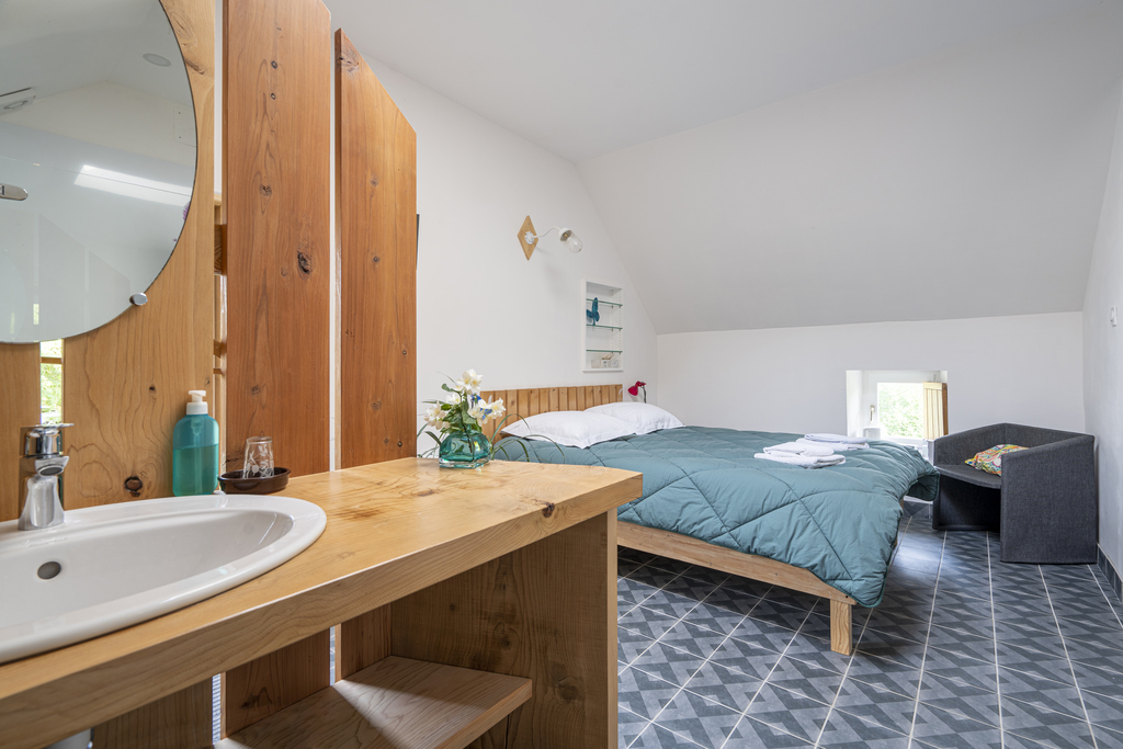 La chambre Eden d'une capacité de 4 personnes maximum se compose d'un lit double (160cm) et d'un canapé lit.