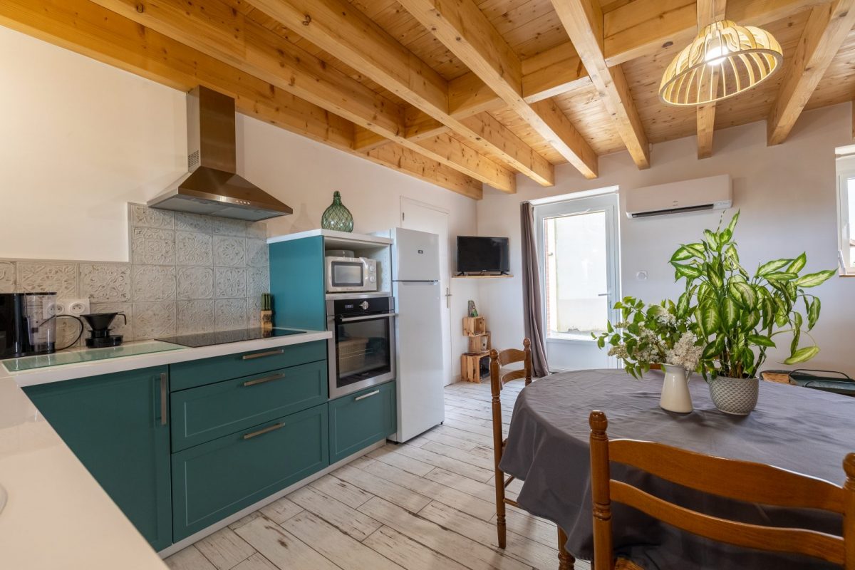 D'une capacité de 4 personnes, il est composé au rez de chaussée d'une pièce à vivre, salon, salle à manger, cuisine tout équipé (frigidaire/congélateur, lave vaisselle, four, four-micro onde, combiné cafetière/expresso...),
