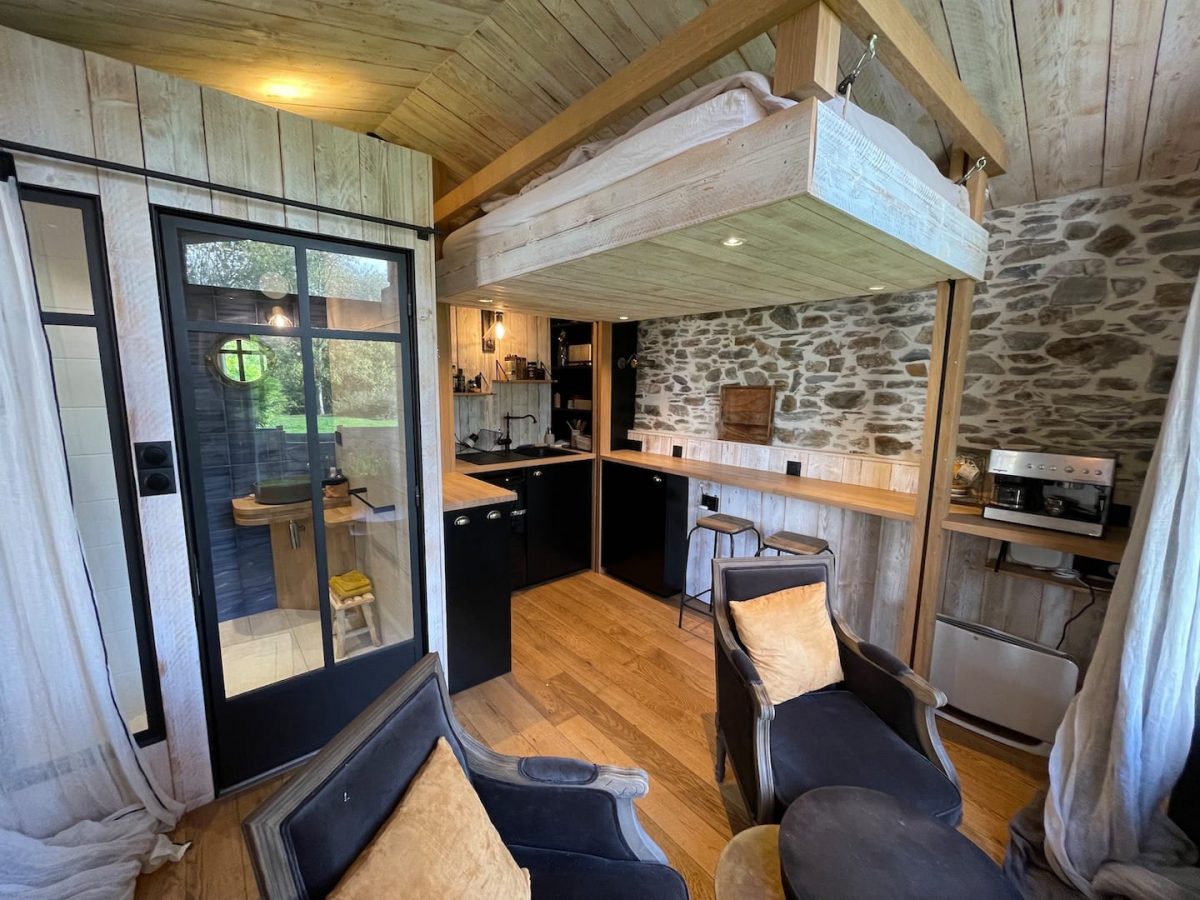 Vous disposerez d'une cuisine équipée, d'un coin salon avec fauteuils, table basse et télévision écran plat. Le lit est une création unique monté sur vérins et finition en chêne, il offre une vue directement sur les étoiles... La salle de bain est en faïence italienne et le parquet est fait pour y marcher pieds nus. Vous profiterez tout au long de votre séjour de petites attentions produites localement : biscuits, fruits, café, thé ...