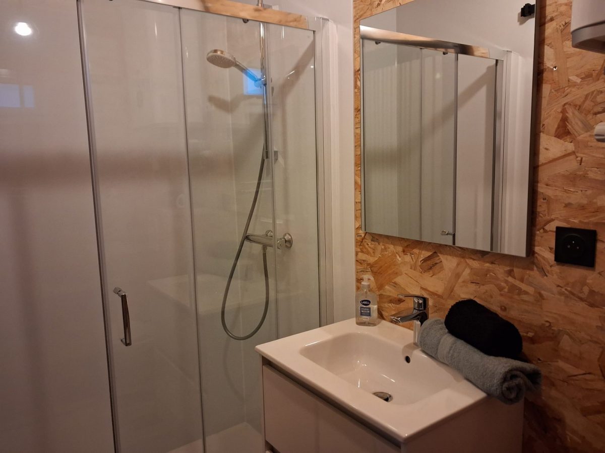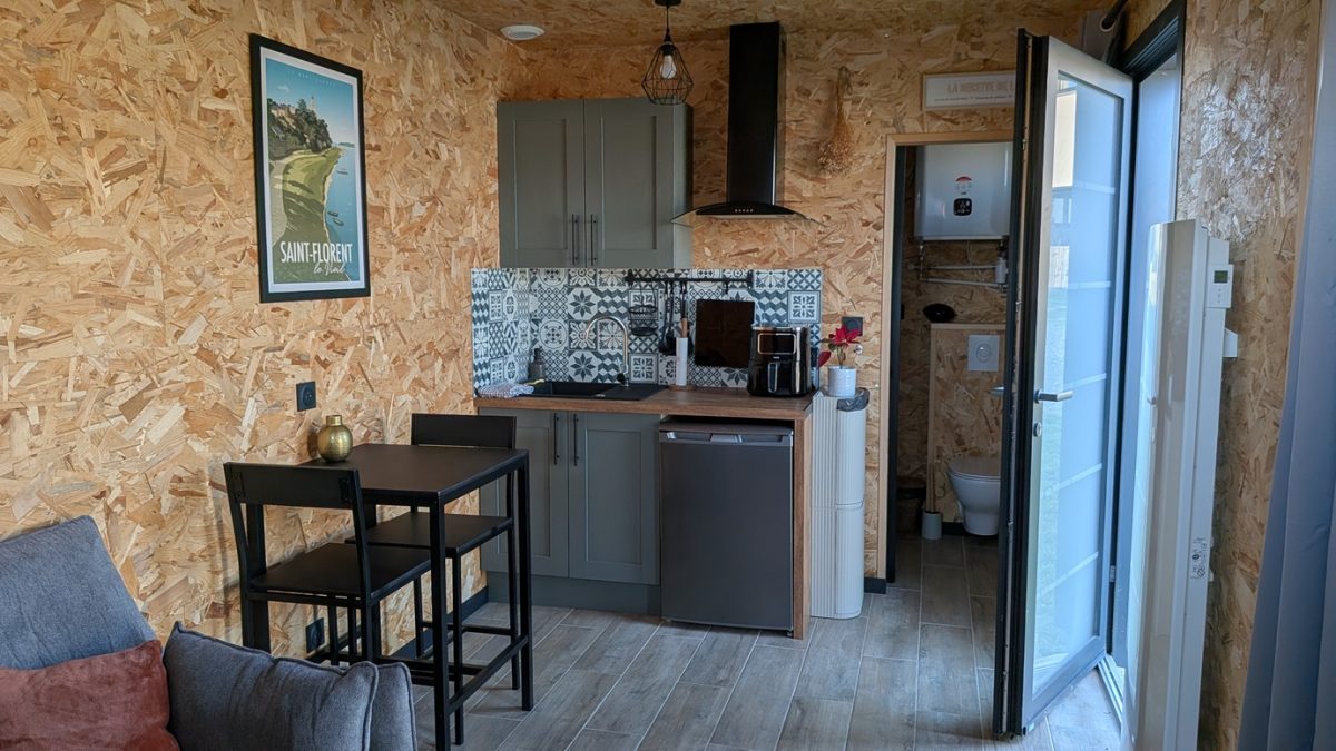 Il est constitué d'une kitchenette (avec air fryer, plaque chauffante mobile et tout le nécessaire pour cuisiner), d'un espace salon avec canapé convertible en lit (2 personnes), d'une salle de douche et de toilettes séparées.
