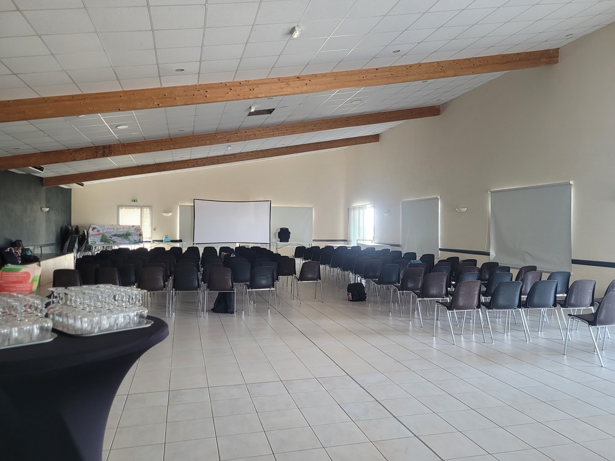 * Possibilité de séparer la salle en 2 espaces (restauration et réunion) avec une capacité maximale de 100 personnes.