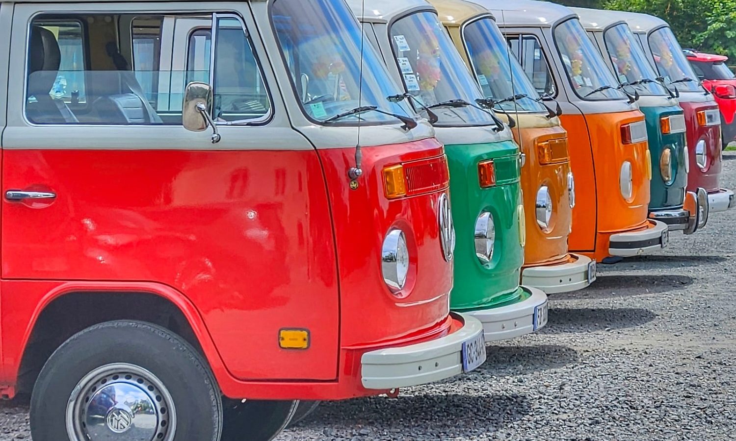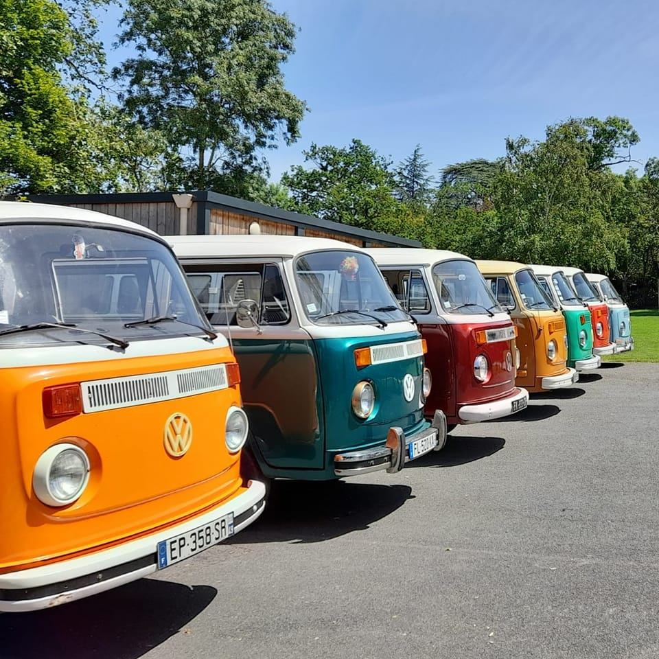 - Véhicules : 6 combis volkswagen T2b et 4 renault 4l