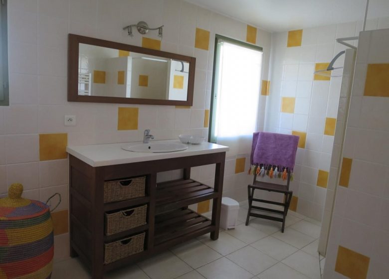 A l'étage : Chambre 1 : 1 lit 160x200, Chambre 2 : 3 lits 90, salle d'eau spacieuse, wc.