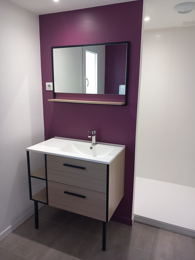 salle de bain avec grande douche, d'une première chambre avec lit 160 cm et