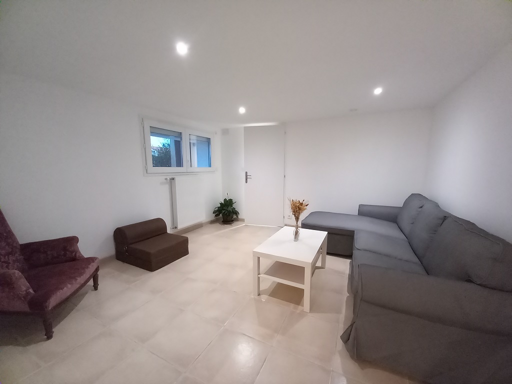 d'un séjour/salon cosy, d'une cuisine semi-ouverte sur le séjour, d'un WC, d'une