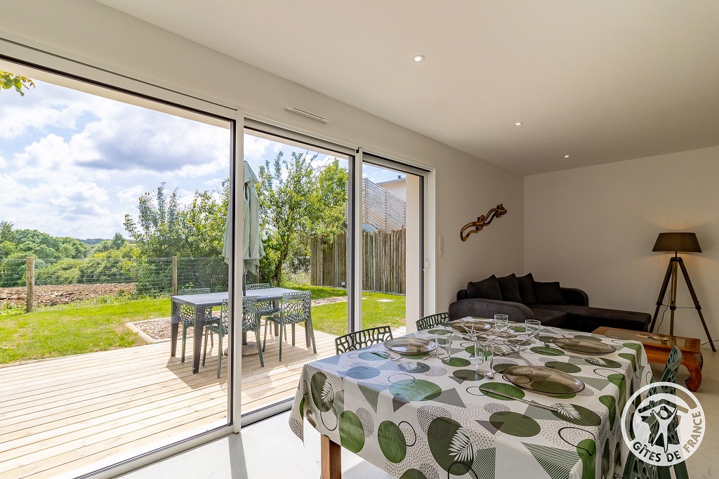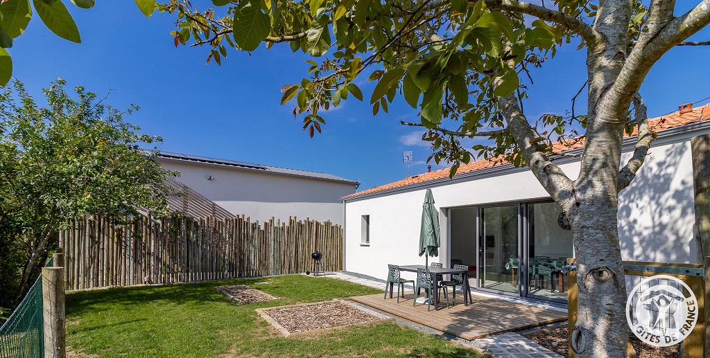 D'une superficie de 60 m², il dispose d'une terrasse avec salon de jardin, parasol et barbecue, ainsi que d'un jardin clos de 100 m² offrant une vue dégagée.