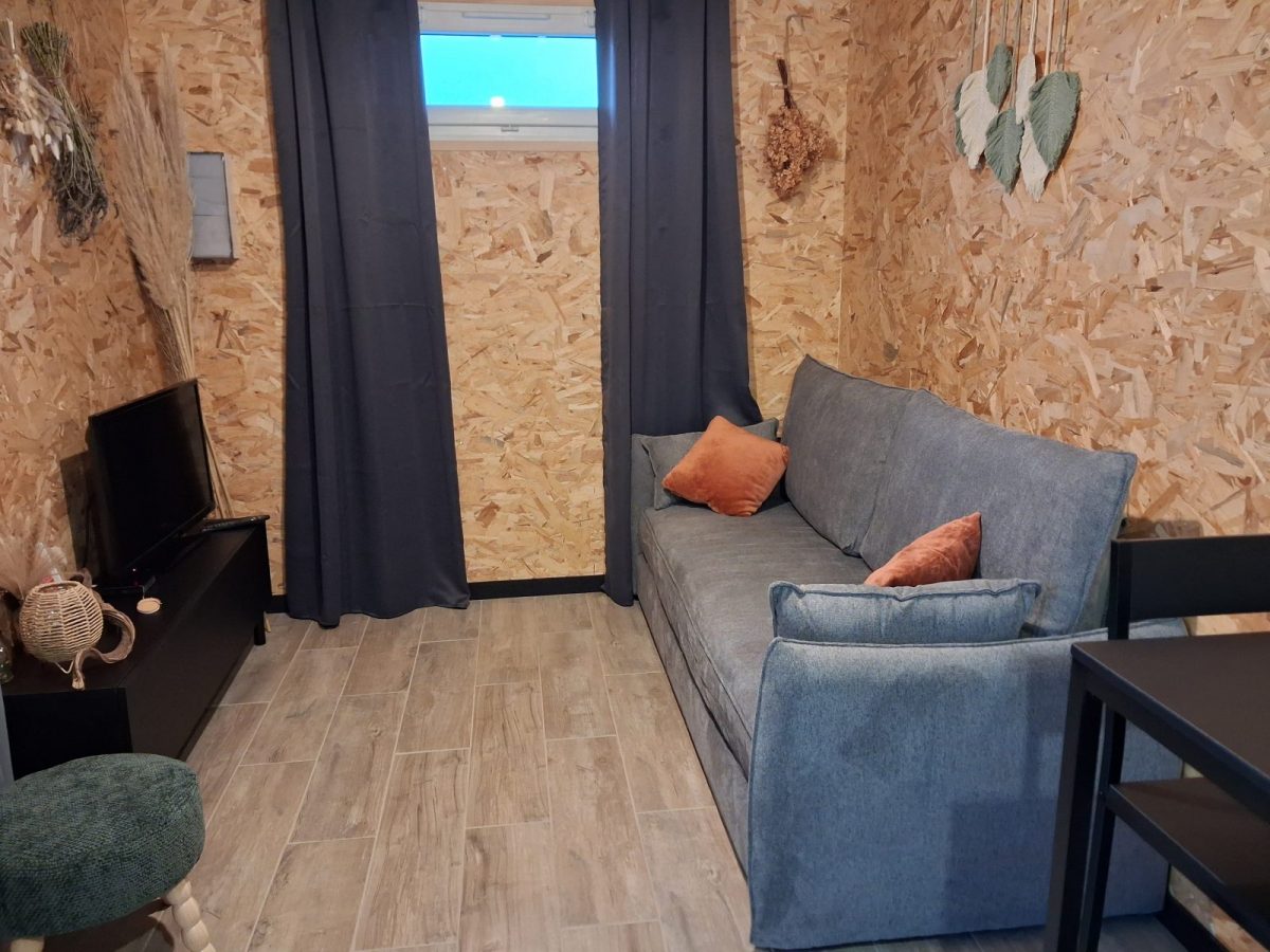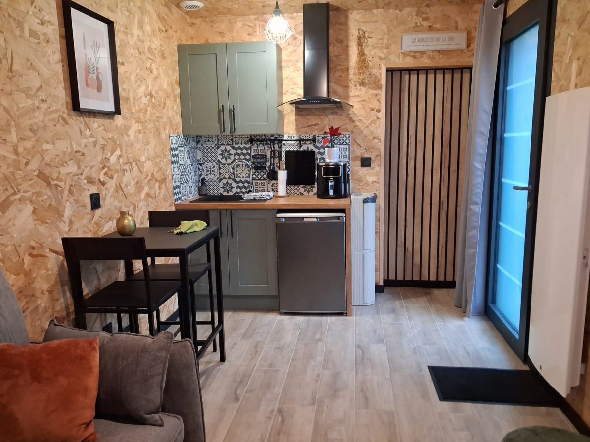 Il est constitué d'une kitchenette (avec air fryer, plaque chauffante mobile et tout le nécessaire pour cuisiner), d'un espace salon avec canapé convertible en lit (2 personnes), d'une salle de douche et de toilettes séparées.