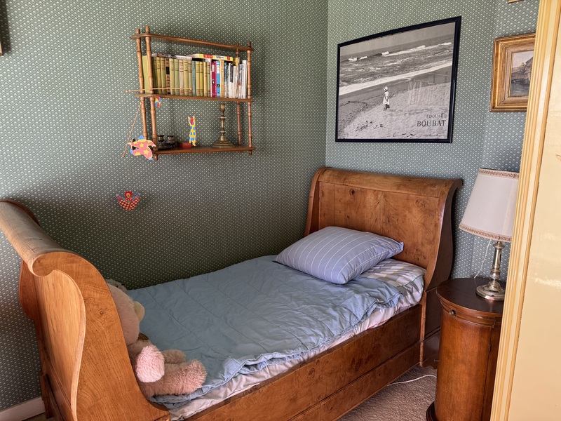 À l’étage, un palier dessert deux chambres disposant chacune de leur salle de bains, un dortoir équipé de trois lits simples pour les enfants, ainsi que deux autres chambres avec lits doubles. Une salle d’eau indépendante vient compléter cet espace nuit.