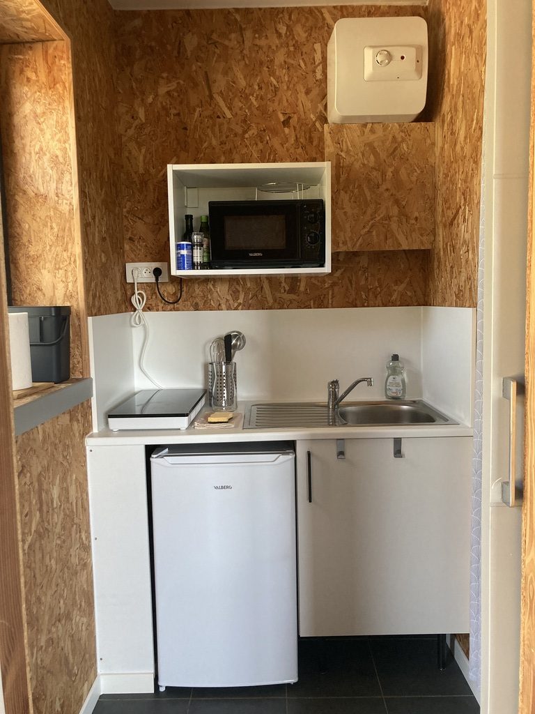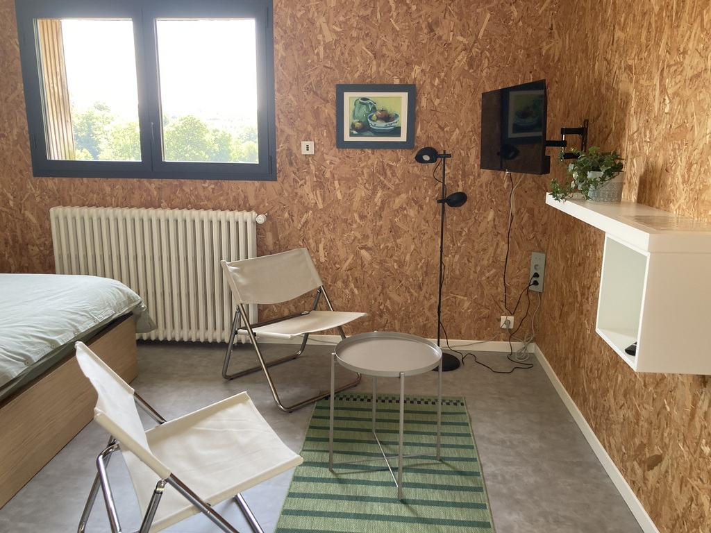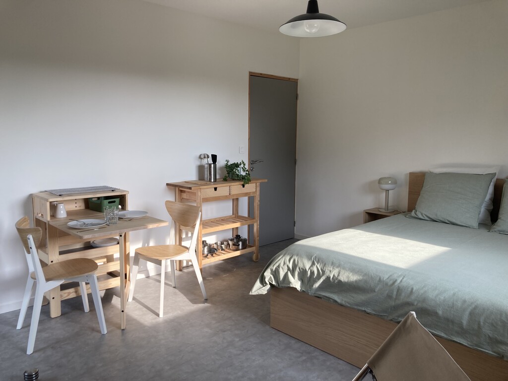 Chambre spacieuse avec entrée indépendante, salle d'eau, WC et kitchenette avec le nécessaire pour faire vos repas.