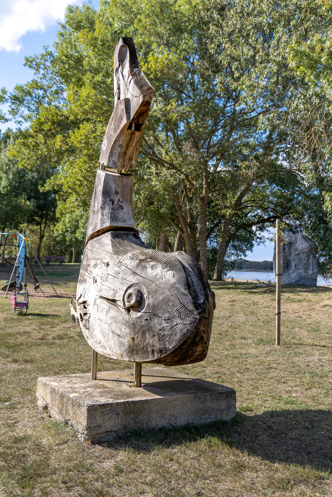 A LOIRE FISH (sequoia wood and stainless steel)This carving is one piece of the “interspersed” collection and was made during the 2012 symposium. It symbolizes aquatic life running through geological roads: Montjean-sur-Loire is one of them, and a very special place indeed.